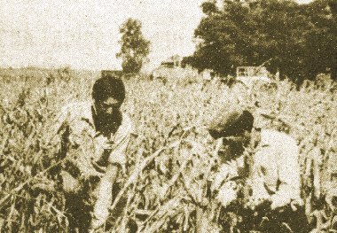 A partir del cincuenta se comienza a combatir las plagas del trigo y el maíz, la langosta y el pulgón principalmente. Se utilizaba DDT, Dieldrin y se dispersaba con tanques tirados por un tractor o más tarde por medio de aviones fumigadores.